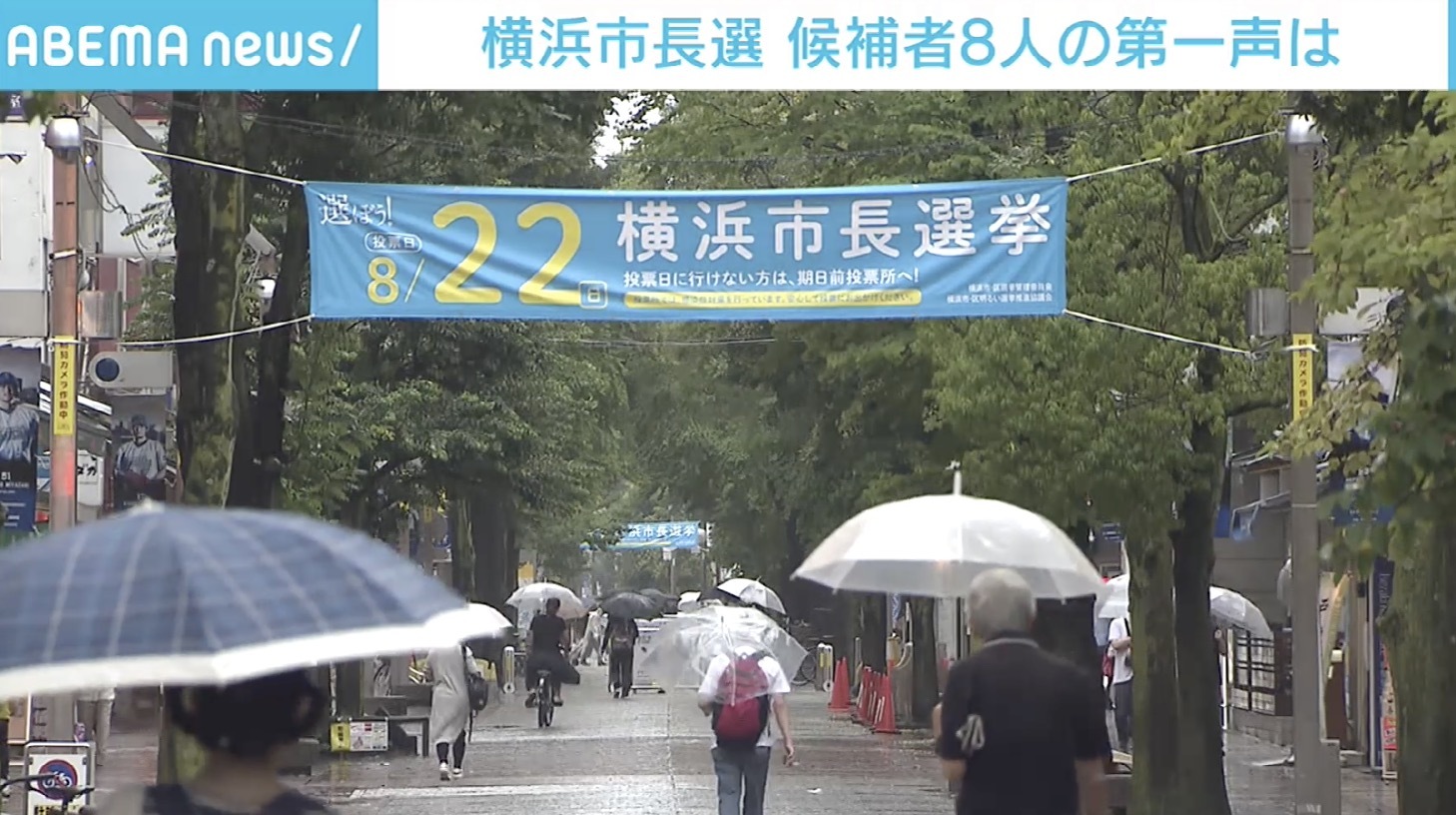 8 月 22日投開票の 横浜 市長選挙 が大混乱の様相を呈している。.